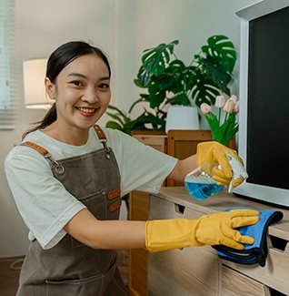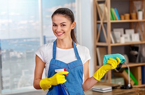 Focuses on cleaning desks, dusting furniture, scrubbing, wiping kitchen counters, mopping floors, dry mopping floors and vacuuming.